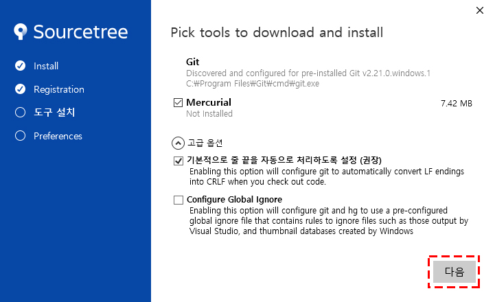 다운받은 소스트리 설치파일을 더블클릭해 줍니다. 설치를 진행해 보죠~