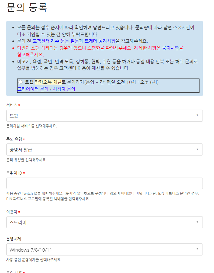 방송에서 후원이 수익으로 잡혀 해촉증명서를 신청하려 한다.