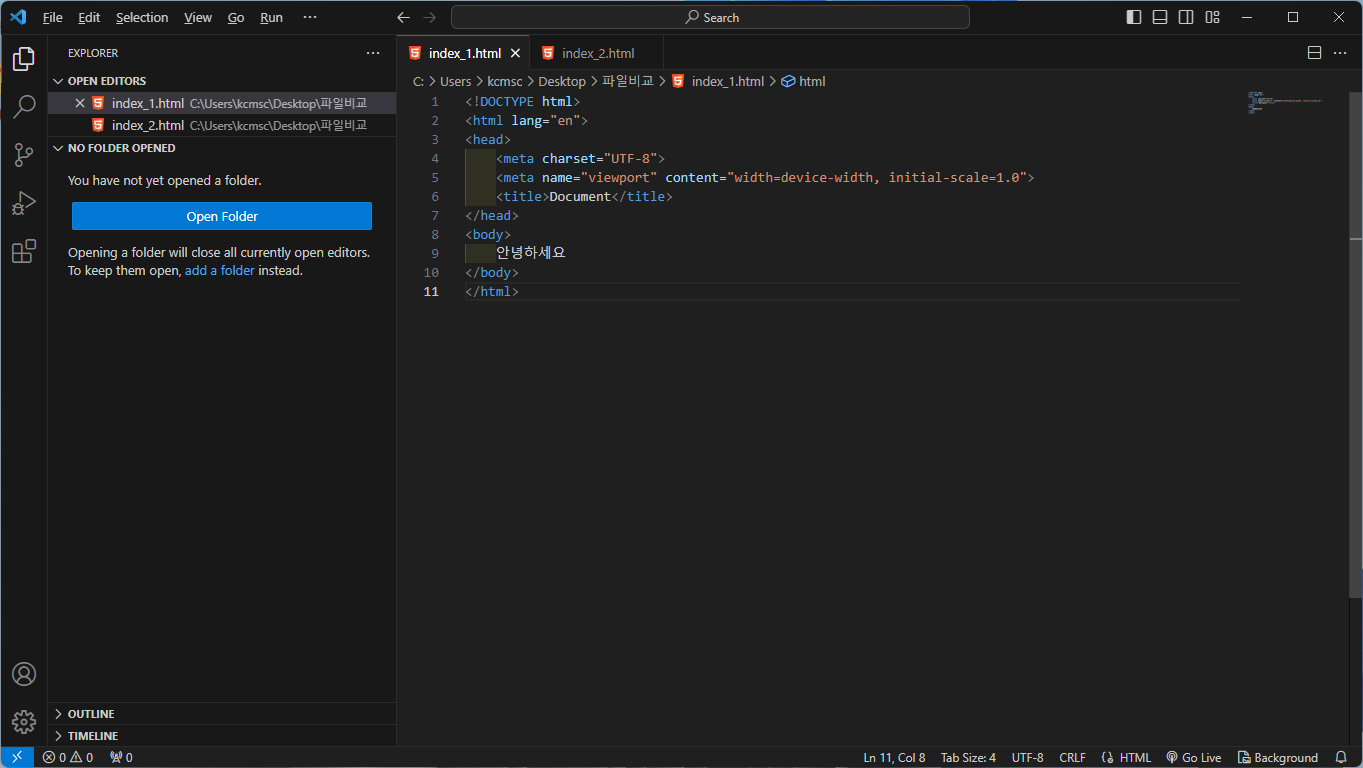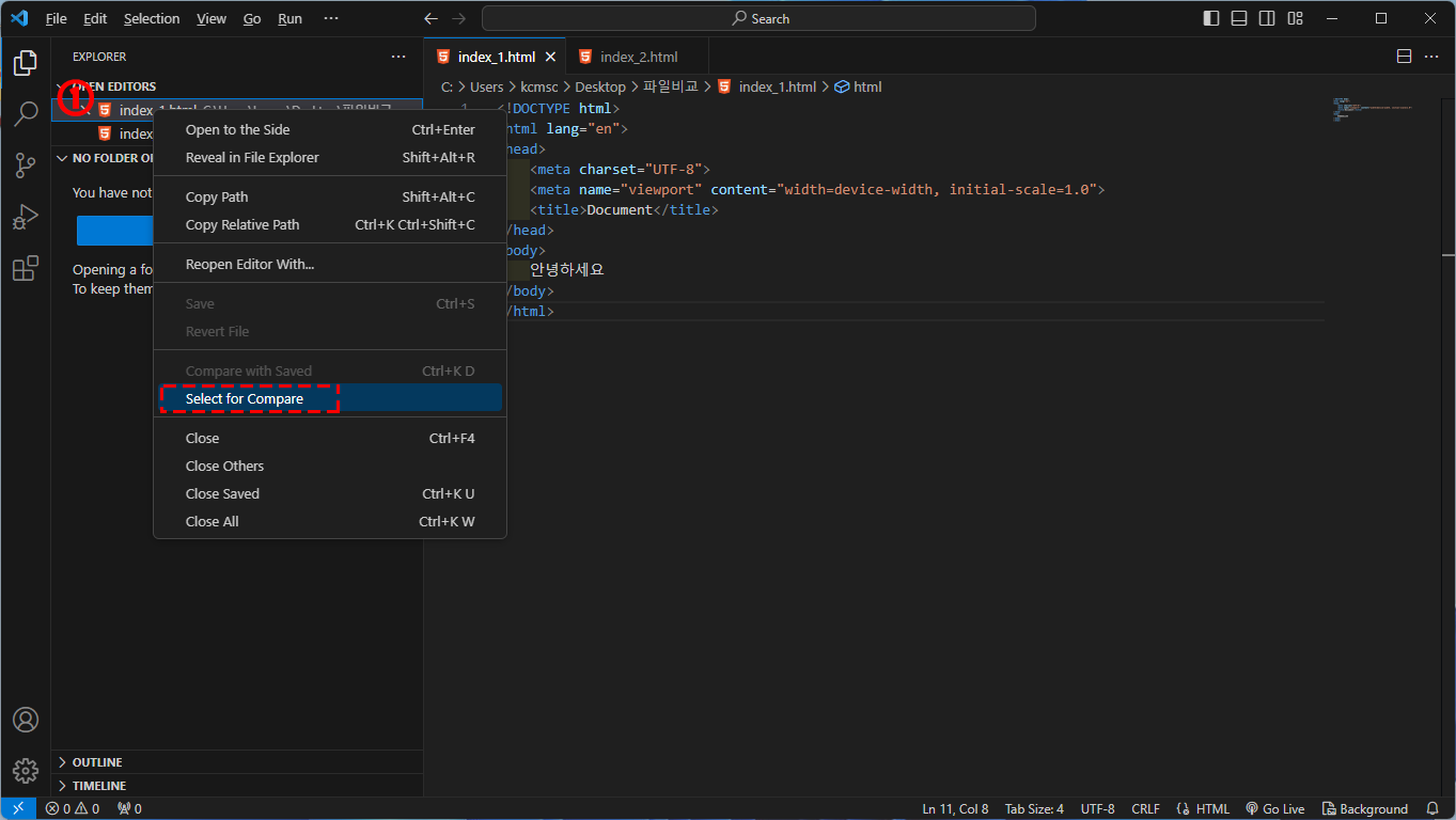 [VS Code] VS Code에서 두개의 파일 비교하기 본문