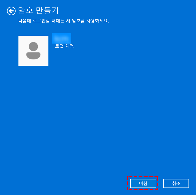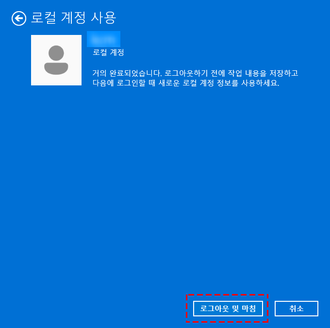 로컬계정으로 로그인을 설정하셧다면 사용자 정보에 아래와같은 화면이 나옵니다.