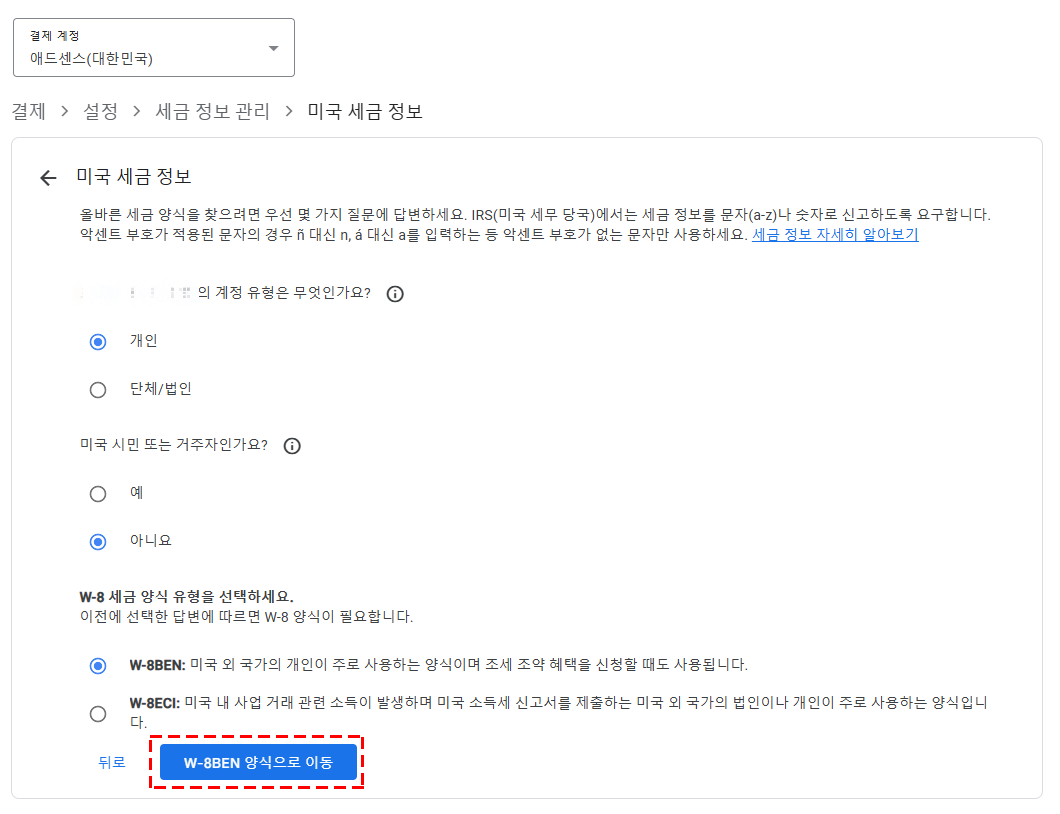 일단 저는 결제 계정이 애드센스용 유투브용 2가지 새 양식을 제출하라고 나와있었지만