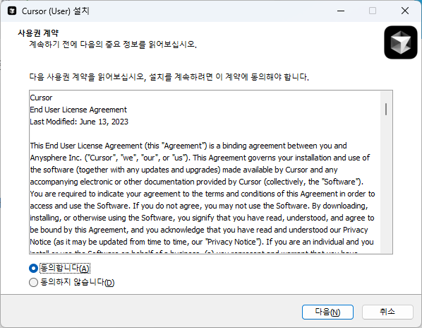 cursor를 설치하면 기존 vscode 를 사용하신 사용자는