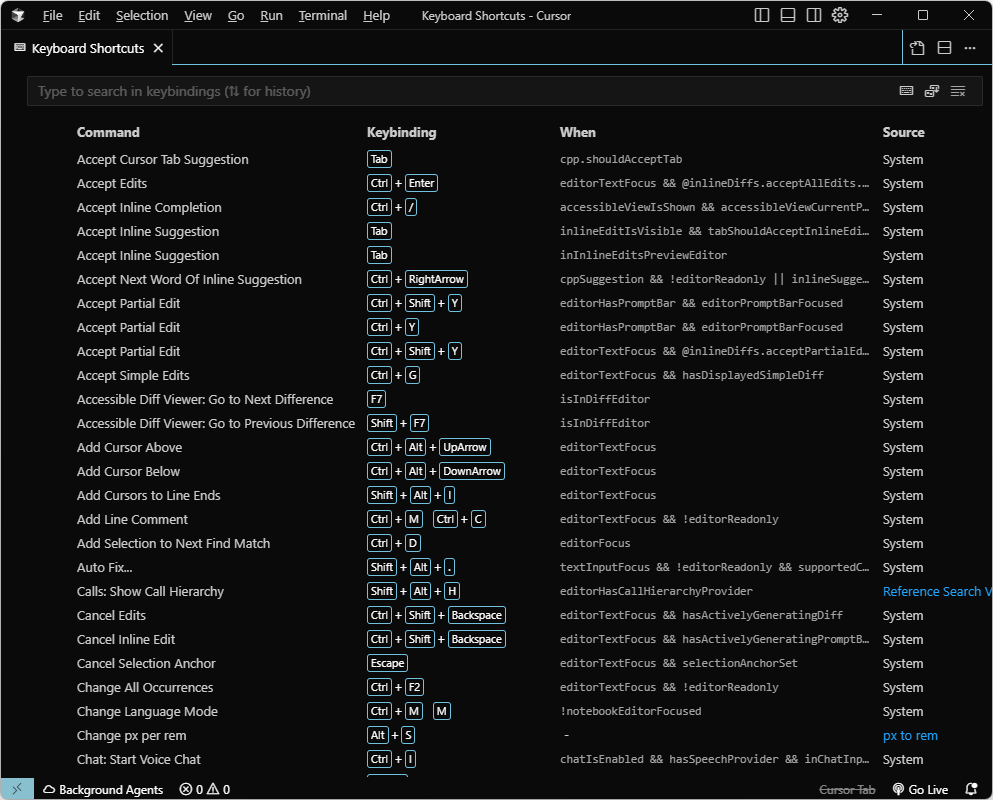 기본적으로 vscode와 연동 되지만 기존에 cursor에 설정과 중복되면서 작동하지 않으니 단축키 한번 확인후 cursor에서 재설정 해준다. |