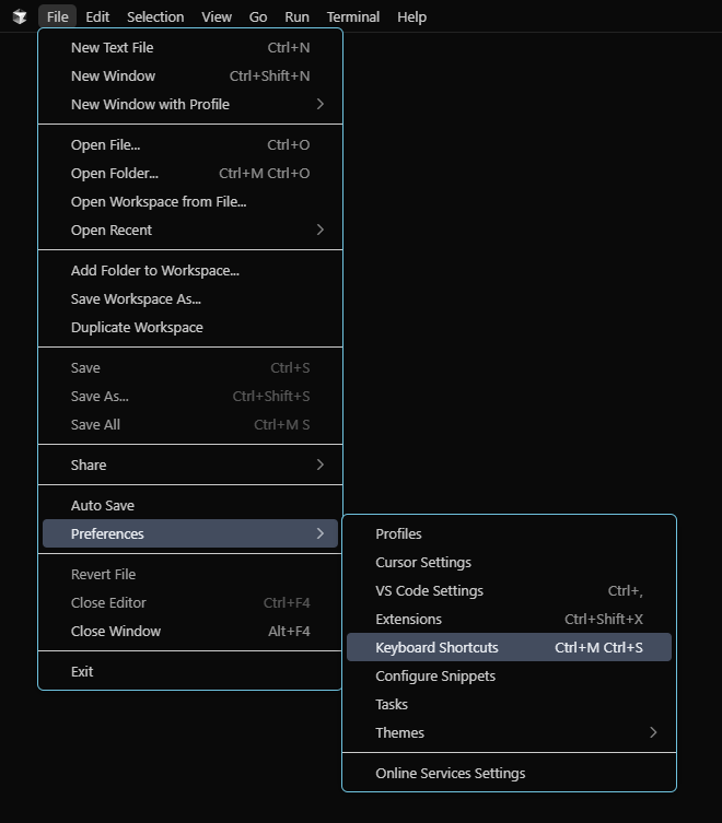 기본적으로 vscode와 연동 되지만 기존에 cursor에 설정과 중복되면서 작동하지 않으니 단축키 한번 확인후 cursor에서 재설정 해준다. |
