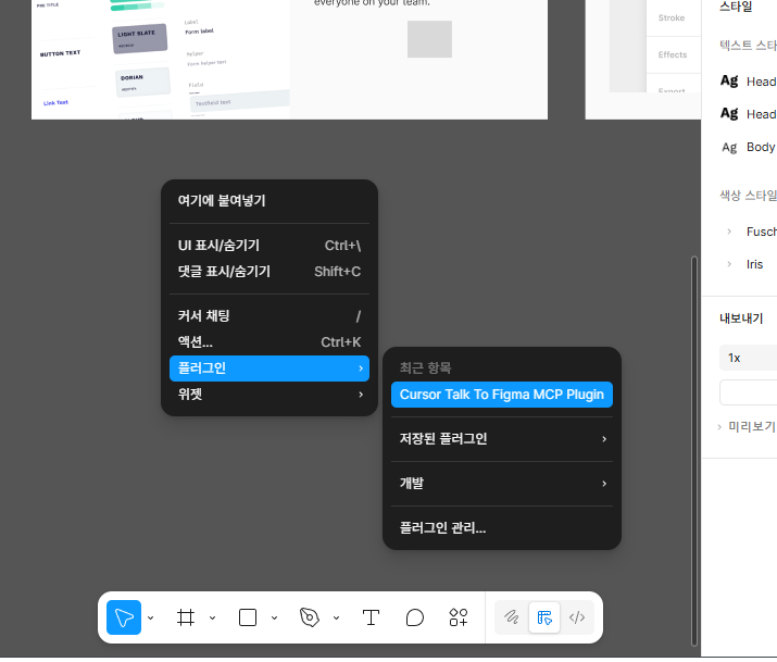 플러그인 > Cursor Talk To Figma MCP Plugin 클릭!