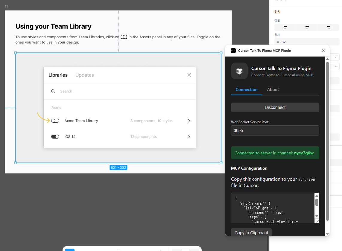 저는 이미 MCP 연결을 해서 TalkToFigma 연결이 잘 된 상태 입니다.